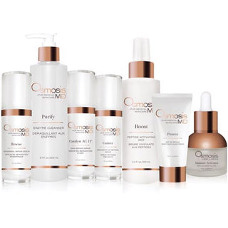 Osmosis has a unique approach to hyperpigmentation; dermal/epidermal scar repair, DNA repair with zinc fingers, 11 natural tyrosinase inhibitors, immune system rejuvenation with 150 growth factors and natural ingredients and barrier repair to reduce the free radical burden.